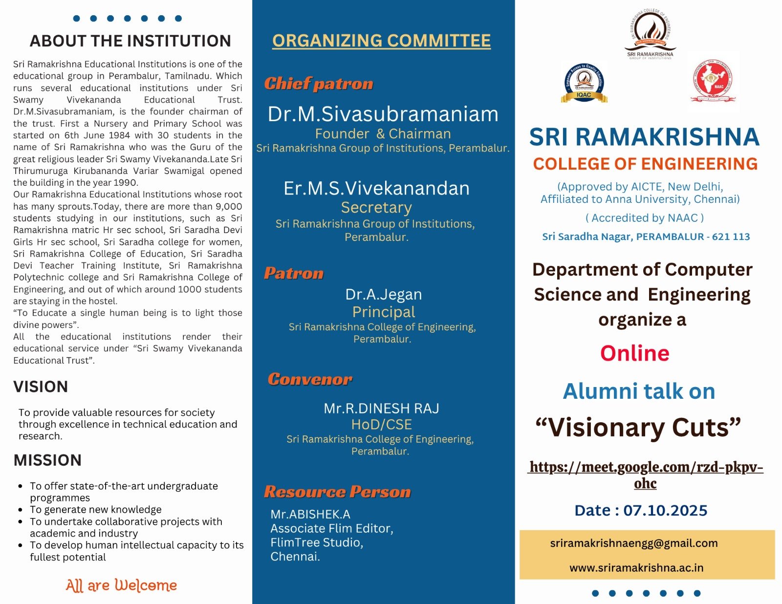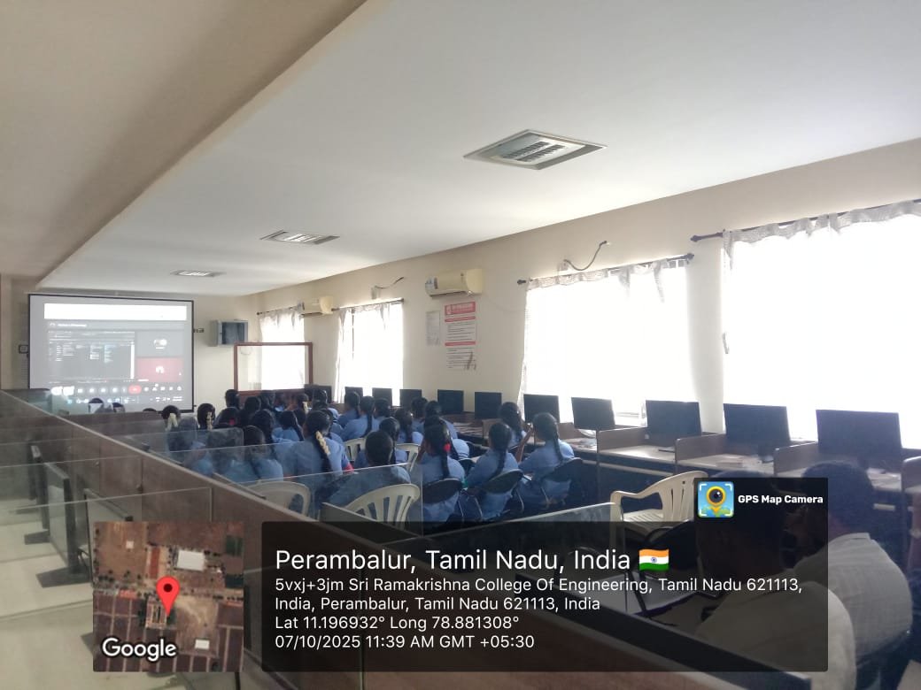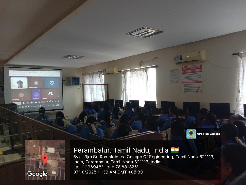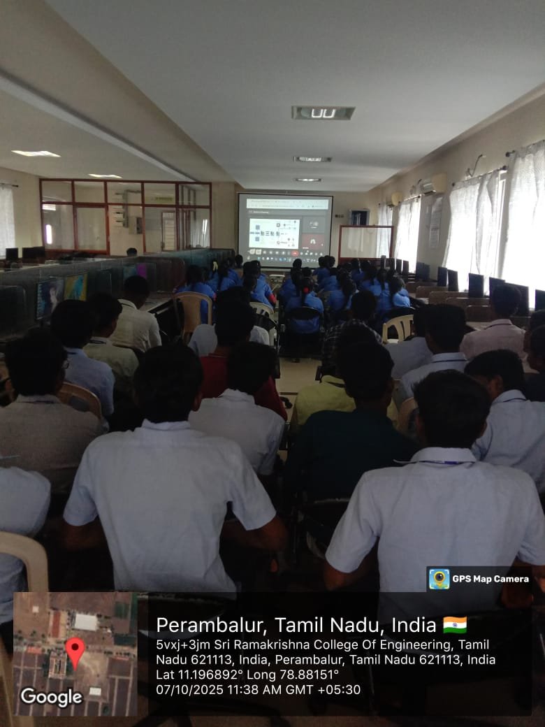 The Department of Computer Science and Engineering organized an inspiring Alumni Talk titled “Visionary Cuts” on 07-10-2025 Tuesday. The session aimed to ignite innovative thinking among students and bridge the gap between campus learning and real-world technology. The guest speaker, Mr.A.Abishek, a proud alumnus from the CSE batch of [2016-2020], currently working as Associate Editor/Film Tree Studios, Chennai, shared valuable insights on emerging tech trends such as Artificial Intelligence, Cloud Computing, and Data Analytics. Drawing from personal experience, they spoke about embracing change, staying curious, and building a visionary mindset to succeed in the fast-paced tech world. The talk also highlighted the importance of continuous learning, problem-solving skills, and adaptability — qualities that define successful professionals in the modern IT industry. The interactive Q&A session saw enthusiastic participation from students, eager to understand how to navigate their own career journeys.