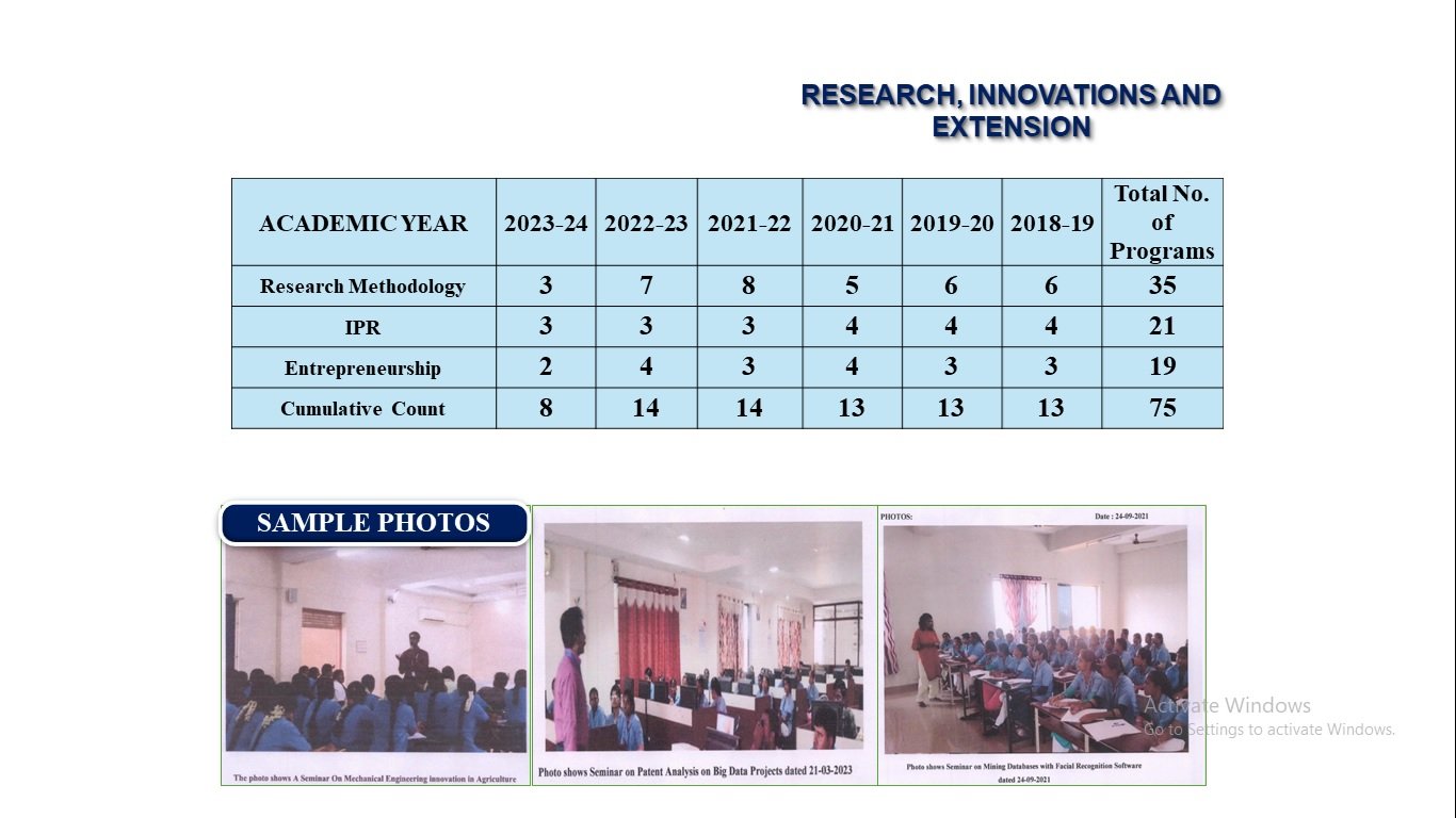 Each department is encouraged to participate in diverse research initiatives throughout the academic year. The research activities of the institution are regularly monitored by the R&D Cell. Researchers from all domains with creative and innovative ideas are inspired and guided to transform their concepts into impactful research outcomes.